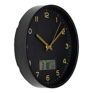 Amiens vægur - Vægur med digital display, plast, sort, Ø25