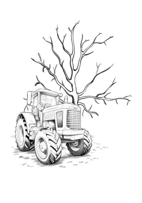 Fingeravtrycksaffisch med träd och traktor