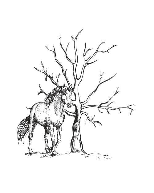 Fingeravtrycksaffisch med träd och häst