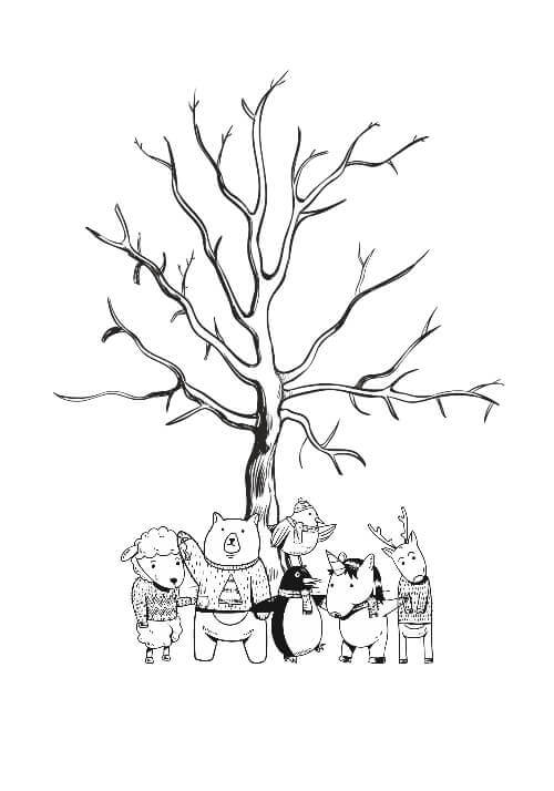 Fingeravtrycksaffisch med trä och unika djur