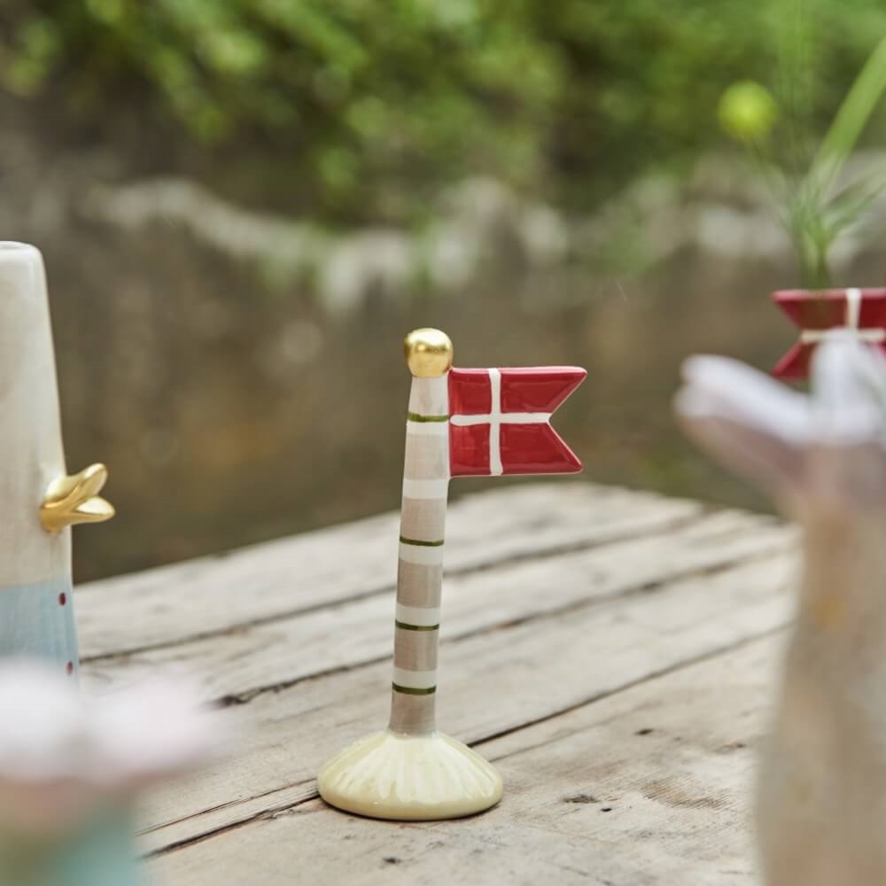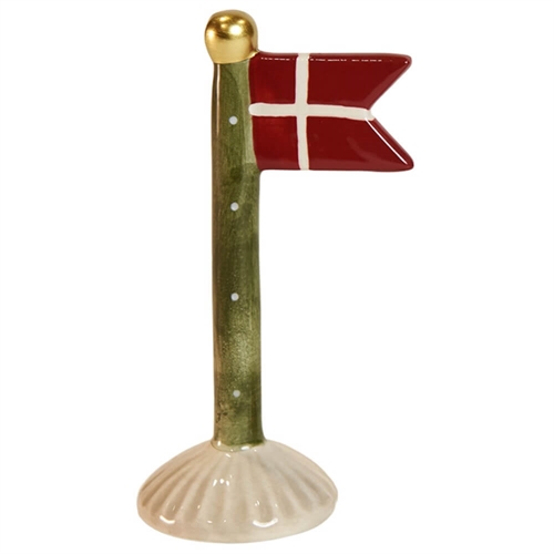 Grön flaggstång med prickar, guldboll, röd dansk flagga och "KASPER" skrivet vertikalt på stången.