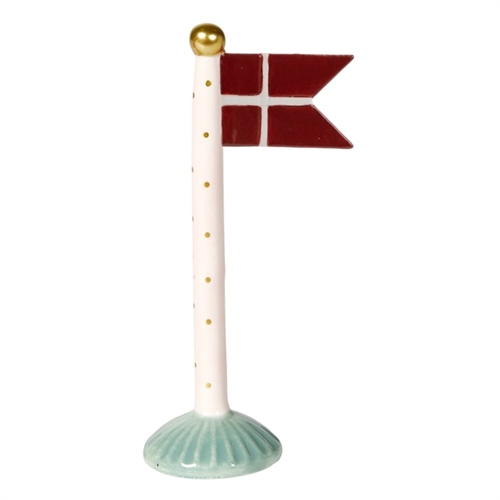 Denna handgjorda keramiska flagga kombinerar den klassiska danska flaggan med en modern tolkning. Den 19 cm höga flaggstången står på en ljusblå bas och bär den välbekanta röda flaggan med ett vitt kors.