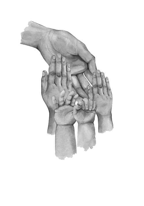 Här får du en bedårande poster med illustration av fyra händer. En stor mamma hand, två barnhänder och en liten, liten babyhand. Under illustrationen finns det utrymme att skriva namnen på familjemedlemmarna. Här får du en fantastisk gullig poster som kommer att påminna dig varje dag om den stora kärlek du har till dina barn. Både de veckor då man har förmånen av vara med sina barn, men också de dagar då Ni inte ses. Den här poster är också en riktigt bra idé för en present till den ensamstående mamman.