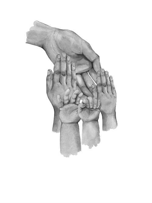 Här får du en bedårande poster med illustration av fyra händer. En stor mamma hand, två barnhänder och en liten, liten babyhand. Under illustrationen finns det utrymme att skriva namnen på familjemedlemmarna. Här får du en fantastisk gullig poster som kommer att påminna dig varje dag om den stora kärlek du har till dina barn. Både de veckor då man har förmånen av vara med sina barn, men också de dagar då Ni inte ses. Den här poster är också en riktigt bra idé för en present till den ensamstående mamman.