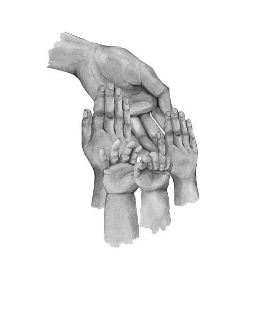 Här får du en bedårande poster med illustration av fyra händer. En stor mamma hand, två barnhänder och en liten, liten babyhand. Under illustrationen finns det utrymme att skriva namnen på familjemedlemmarna. Här får du en fantastisk gullig poster som kommer att påminna dig varje dag om den stora kärlek du har till dina barn. Både de veckor då man har förmånen av vara med sina barn, men också de dagar då Ni inte ses. Den här poster är också en riktigt bra idé för en present till den ensamstående mamman.