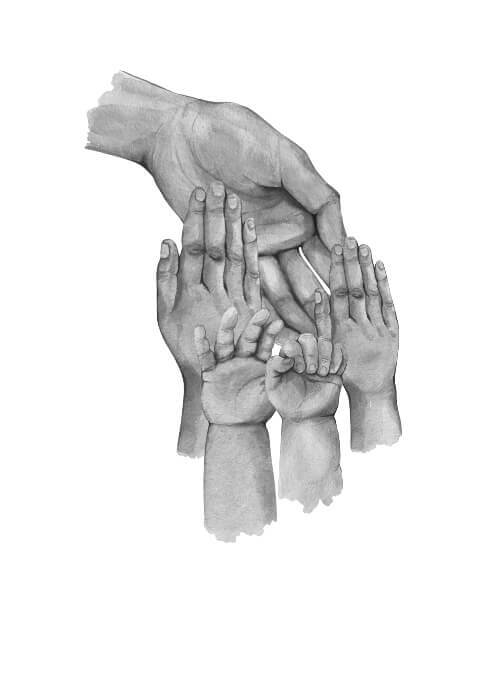 Här får du en bedårande poster med illustration av fyra händer. En stor mamma hand, två barnhänder och en liten, liten babyhand. Under illustrationen finns det utrymme att skriva namnen på familjemedlemmarna. Här får du en fantastisk gullig poster som kommer att påminna dig varje dag om den stora kärlek du har till dina barn. Både de veckor då man har förmånen av vara med sina barn, men också de dagar då Ni inte ses. Den här poster är också en riktigt bra idé för en present till den ensamstående mamman.