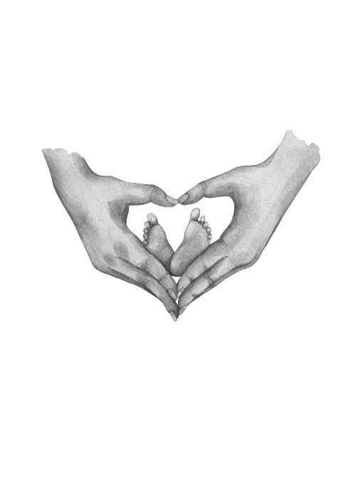 Här får du en bedårande poster med illustration av mammas händer som gör ett hjärta. Inuti hjärtat ser man de sötaste små babyfötter. Under illustrationen hittar du den härliga texten "Love you to the moon and back again". Under texten finns det utrymme att skriva namnen på din lilla baby. Här får du en fantastisk gullig poster som kommer att påminna dig varje dag om den stora kärlek du har till dina barn. Den här poster är också en riktigt bra idé för en present till den ensamstående mamman.
