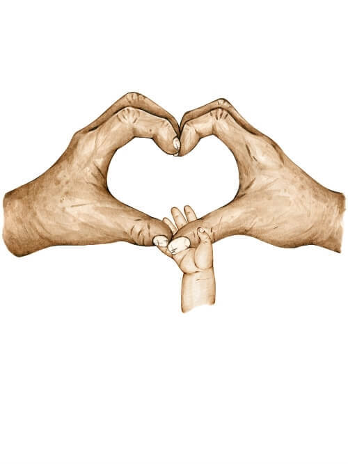 Morföräldrar med ett barnbarn hand affischer med text i färg