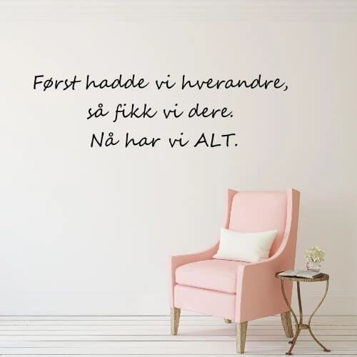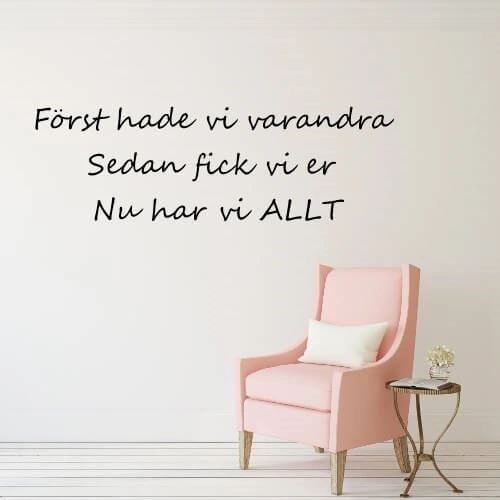 Fin wallstickers med texten: Först hade vi varandra, sedan fick vi er. Nu har vi ALLT