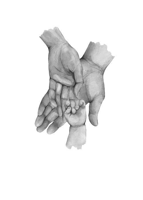 Här får du en bedårande poster med illustration av tre händer. En stor pappa hand, en lite mindre mamma hand, och så förstås en liten, liten babyhand. Under illustrationen finns det utrymme att skriva namnen på familjemedlemmarna. Här får du en fantastisk gullig poster som kommer att påminna dig varje dag om den stora kärleken du har i din familj. Den här poster är också en riktigt bra idé för en present till familjen som precis har gått från att vara två till att vara tre.