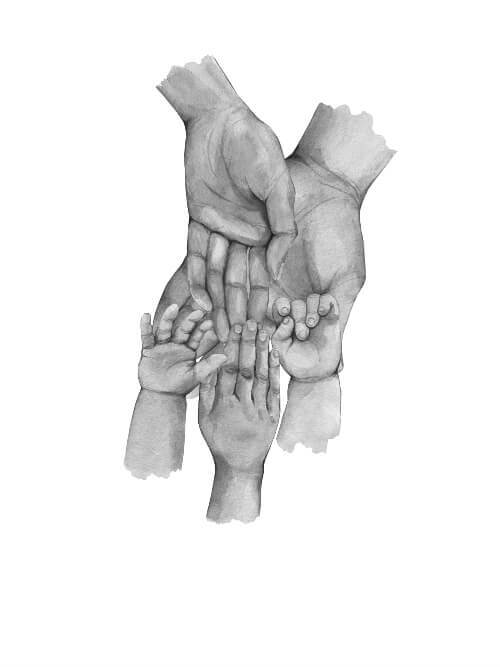 Här får du en förtjusande familjeposter med illustration av fem händer. En stor pappas hand, en något mindre mammas hand och sedan tre barns händer, två något större och en babyhand. Under illustrationen finns det utrymme att skriva namnen på alla familjemedlemmar. Här får du en fantastisk söt poster som varje dag påminner dig om den stora kärlek du har i din familj. Den här posteren är också en riktigt bra idé för en present till familjen som precis har gått från att vara fyra till att vara fem.