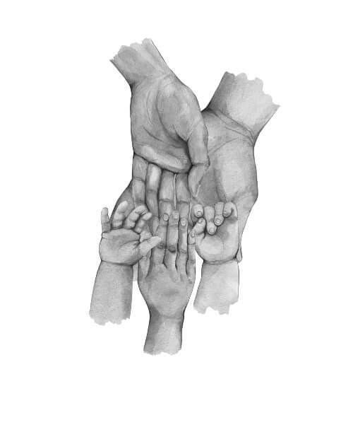 Här får du en förtjusande familjeposter med illustration av fem händer. En stor pappas hand, en något mindre mammas hand och sedan tre barns händer, två något större och en babyhand. Under illustrationen finns det utrymme att skriva namnen på alla familjemedlemmar. Här får du en fantastisk söt poster som varje dag påminner dig om den stora kärlek du har i din familj. Den här posteren är också en riktigt bra idé för en present till familjen som precis har gått från att vara fyra till att vara fem.