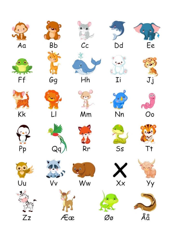 Gullig och färgstark ABC -inlärningsbräda för barnrummet med många olika djur