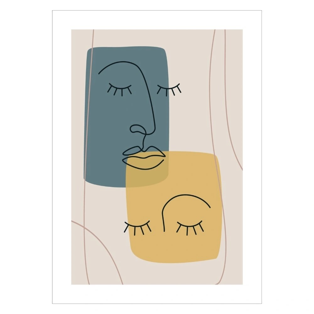 Poster med abstrakt ansiktslinje och blå och gula färger