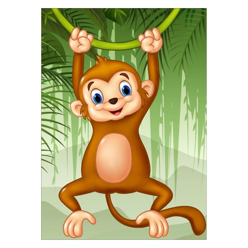 Barnposter med apa som hänger i en vinstock