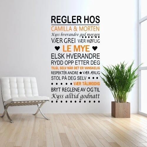 Text Regler hos (namn) - Wallsticker i 2 färger
