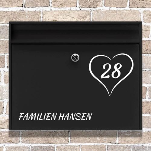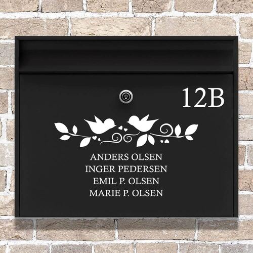 Stickers till brevlådan. Är det något du funderar på? Om du går en promenad i ett bostadsområde och tittar på brevlådor kommer du garanterat att upptäcka att det finns många olika sätt att dekorera sin brevlåda. Många håller sig fortfarande till det traditionella, med bara namn och / eller husnummer. Men det är också många som väljer att dekorera brevlådan med ett gulligt, roligt och / eller vackert klistermärken. Vi har designat en mängd klistermärken för brevlådan, så du kommer garanterat hitta ett klistermärke som passar ihop med ditt hem och din familj. Våra klistermärken för brevlådan finns i olika färger, så du ska givetvis välja en färg som står i kontrast med färgen på din brevlåda, så att du tydligt kan se det fina motivet. Vi har delat upp våra brevlådes klistermärken i tre olika kategorier, Namnstickers, Figur Stickers och Företags Stickers, så låt oss komma igång och titta på allt du har att välja mellan.