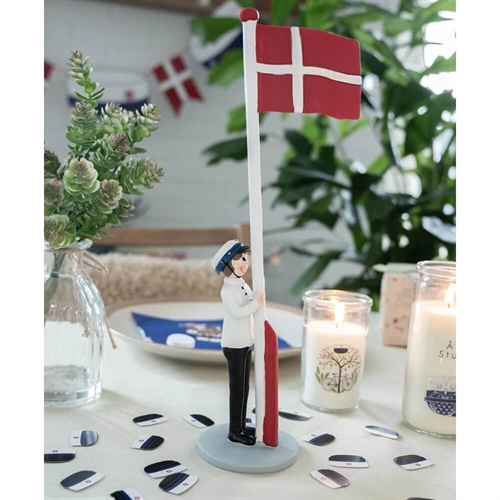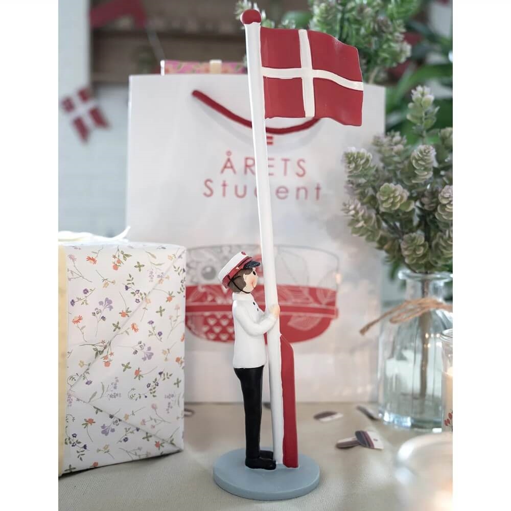 Student med flagga, figur, höjd 31 cm, diameter 7,5 cm, blå och röd hatt ingår, så att du själv kan bestämma vilken student