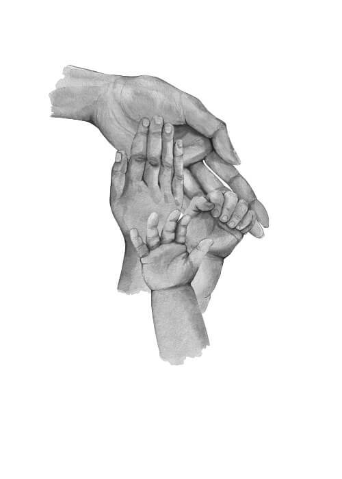 Här får du en bedårande poster med illustration av fyra händer. En stor mamma hand, två barnhänder och en liten, liten babyhand. Under illustrationen finns det utrymme att skriva namnen på familjemedlemmarna. Här får du en fantastisk gullig poster som kommer att påminna dig varje dag om den stora kärlek du har till dina barn. Både de veckor då man har förmånen av vara med sina barn, men också de dagar då Ni inte ses. Den här poster är också en riktigt bra idé för en present till den ensamstående mamman.