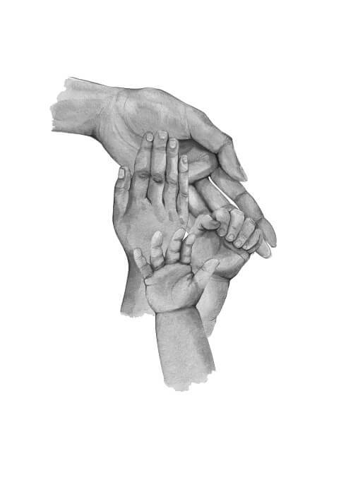 Här får du en bedårande poster med illustration av fyra händer. En stor mamma hand, två barnhänder och en liten, liten babyhand. Under illustrationen finns det utrymme att skriva namnen på familjemedlemmarna. Här får du en fantastisk gullig poster som kommer att påminna dig varje dag om den stora kärlek du har till dina barn. Både de veckor då man har förmånen av vara med sina barn, men också de dagar då Ni inte ses. Den här poster är också en riktigt bra idé för en present till den ensamstående mamman.