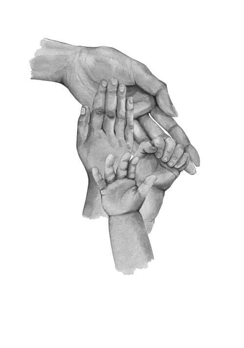 Här får du en bedårande poster med illustration av fyra händer. En stor mamma hand, två barnhänder och en liten, liten babyhand. Under illustrationen finns det utrymme att skriva namnen på familjemedlemmarna. Här får du en fantastisk gullig poster som kommer att påminna dig varje dag om den stora kärlek du har till dina barn. Både de veckor då man har förmånen av vara med sina barn, men också de dagar då Ni inte ses. Den här poster är också en riktigt bra idé för en present till den ensamstående mamman.
