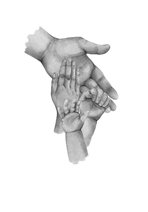 Här får du en bedårande poster med illustration av fyra händer. En stor pappa hand, två barnhänder och en liten, liten babyhand. Under illustrationen finns det utrymme att skriva namnen på familjemedlemmarna. Här får du en fantastisk gullig poster som kommer att påminna dig varje dag om den stora kärlek du har till dina barn. Både veckorna då man har förmånen av vara med sina barn, men också veckorna då Ni inte ses. Den här poster är också en riktigt bra idé för en present till den ensamstående pappan.