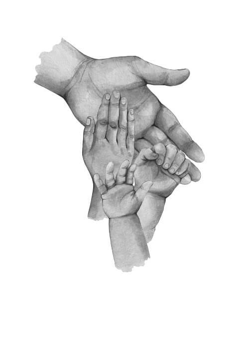 Här får du en bedårande poster med illustration av fyra händer. En stor pappa hand, två barnhänder och en liten, liten babyhand. Under illustrationen finns det utrymme att skriva namnen på familjemedlemmarna. Här får du en fantastisk gullig poster som kommer att påminna dig varje dag om den stora kärlek du har till dina barn. Både veckorna då man har förmånen av vara med sina barn, men också veckorna då Ni inte ses. Den här poster är också en riktigt bra idé för en present till den ensamstående pappan.