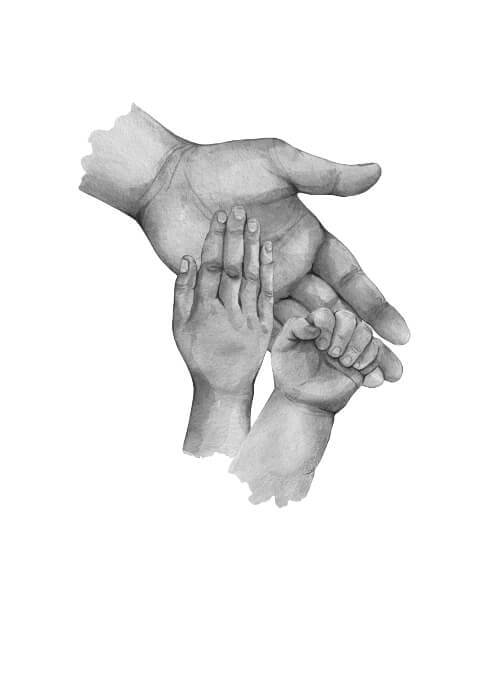 Här får du en bedårande poster med illustration av tre händer. En stor pappa hand, en liten barnhand och en liten, liten babyhand. Under illustrationen finns det utrymme att skriva namnen på familjemedlemmarna. Här får du en fantastisk gullig poster som kommer att påminna dig varje dag om den stora kärlek du har till dina barn. Både veckorna då man har förmånen av vara med sina barn, men också veckorna då Ni inte ses. Den här poster är också en riktigt bra idé för en present till den ensamstående pappan.